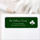 Rua. Etiqueta do endereço verde do Dia de Patrick, com uma simples design de shamrock branco e tipografia de script. Com a inscrição personalizável branca, você pode adicionar seu próprio texto. Uma adição divertida aos seus cartões de natal e convites.