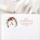 Etiqueta de endereço de ida e volta de Natal perfeita com vermelho borrado, creme e design floral verde com monograma em letra moderna.