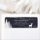 Rótulos Rustic Winter Woodland Deer Return. Veado de inverno bonito na neve com lanternas e pinheiros.