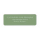 Esta simples etiqueta de endereço de retorno de casamento verde de sábio apresenta um roteiro elegante de branco para uma cerimônia ao ar livre em um ambiente natural. Tipografia minimalista em etiquetas de correio verde-claro pacíficas para um local rústico perto de uma floresta de árvores.