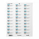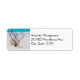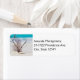 Etiquetas de endereço com uma bela fotografia. Água azul tropical e surf de espuma no fundo. Uma coleção de conchas e caules em uma praia branca de areia.