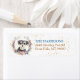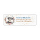 O lado esquerdo destas etiquetas de endereço de retorno apresenta uma imagem de uma coroa de primavera em cores de rosa mole, azul, dourado, verde e creme. No centro está um belo retrato aquoso de um cão Schnauzer. Pequeno confete de ouro dá um brilho sutil ao fundo. Seu texto personalizado está em ouro azul e marrom à direita.