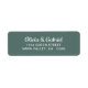Script branco na moda. Rótulo de Endereço de Devolução de Casamento Verde minimalista. Adicione facilmente o seu nome e endereço personalizados.