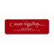 Este rótulo apresenta as palavras saudações da estação em uma fonte de script escrita em branco e definida em um fundo vermelho.