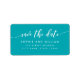 Rótulo de endereço de retorno de na moda com as palavras "Salvar a Data" em um script cursivo de relaxamento branco e uma cor de fundo editável (clique em personalizar para acessar). É perfeito para enviar convites para Salvar a Data/Casamento. Personalize-o substituindo o texto do marcador de posição. Para obter mais opções, como alterar a fonte, o tamanho do texto ou o espaçamento entre letras, clique no botão "Personalizar". *Observe que a Marca d'água Zazzle que aparece na visualização de zoom NÃO aparecerá no produto impresso final © Rosewood e Citrus