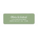 Script branco na moda. Rótulo de Endereço de Devolução de Casamento Verde Claro e Minimalista. Adicione facilmente o seu nome e endereço personalizados.