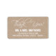 Script Obrigado A Mandar Etiquetas. Elke Clarke © para epclarke em Zazzle. Fonte branca do script no efeito fotográfico do papel kraft bege original impresso. Personalize com seu nome e endereço recém-casados. Excelente para casamento ou casamento de campo