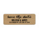 Boige Rustic Burlap Script Wedding Salve a Etiqueta de Endereço de Retorno de Data. Design por Elke Clarke© para MonographicGallery, impressa por Zazzle. Envie suas cartões salve a data para seus amigos e familiares usando esta maravilhosa e simples etiqueta com as palavras "salve a data" escrita em uma cobertura de texto de escrita manual em preto. Efeito fotográfico impresso do fundo da burlap bege. Outras cores disponíveis.