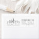 Uma etiqueta de endereço única representando a bela cidade de Seattle. Este rótulo apresenta uma ilustração estilizada do horizonte único da cidade com seu nome embaixo.