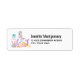 Etiquetas de endereço com uma ilustração de aquarela fofa. 2 sereias nadando sob o mar entre a flora. Uma água-viva feliz também flutua. Querido e ilustração encantadora.