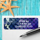 Este design de etiqueta de endereço apresenta uma bela cauda de sereia em azul claro colocado sobre um fundo de cinzas cintilantes em tons de azul e roxo.