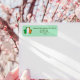 A bandeira da Irlanda dentro a shamrock com o seu nome e endereço em verde escuro sobre fundo verde claro.