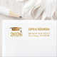 Modern custom address label design featuring elegant gold script typography, complementary gold grad cap on a clean white background. Customize with your grad's name, class year and return address.