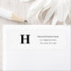Etiquetas de endereço de retorno elegantes em letras brancas e pretas. Monograma inicial alfabético. Adicione-os aos envelopes para adicionar algum toque de classe. Perfeito para qualquer ocasião: Casamento, aniversário, anúncio, formatura. Templos editáveis - adicione suas próprias informações.