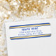 Adicione um toque elegante de acabamento aos envelopes com as etiquetas de endereço azul-real, ouro e branco na moda. O texto neste modelo é simples de personalizar. Design apresenta tipografia moderna quic e folha de ouro falsa clássica e listras horizontais brancas. Observe que o ouro é impresso a cor, não a folha metálica.