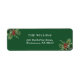 Esta simples etiqueta verde do endereço de volta de Natal apresenta folhas sazonais de pinheiros com cor d'água e bagas sagradas com tipografia elegante sobre um fundo verde rico. Fácil de personalizar com seu nome e endereço de família. Par com os nossos itens correspondentes da mesma coleção para uma vista de Natal coordenada nesta época de férias.