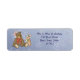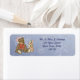 O tema do Natal doce apresenta um ursinho de peluche e seu amigo coelho com fundo azul de floco de neve. O texto está pronto para você personalizar com suas informações.