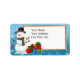 Um bonitinho bonitinho vestindo chapéu e cachecol e adorado com Enfeites de natal fica ao lado de uma pilha de presentes de Natal. Etiqueta de endereço de feriado para os seus cartões de Natal.