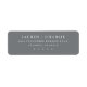 This label features a minimalist, modern design with a solid gray background and white text for high contrast. The layout is centered, showcasing large, uppercase serif font at the top, followed by smaller sans-serif font for address details, creating an elegant hierarchy. Its clean lines and ample spacing convey sophistication and simplicity, making it ideal for formal invitations or announcements. The absence of decorative elements emphasizes clarity and order, perfect for those seeking a refined and uncluttered aesthetic.