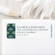 These return address labels feature a sophisticated and minimalist design, perfect for formal occasions. The left side showcases a repeating pattern of stylized leaf motifs in shades of green and teal against a deep navy blue background, creating an organic feel. On the right, clean, modern typography presents customizable text with elegant spacing, enhancing readability and balance. The overall style exudes refinement and tranquility, making these labels ideal for weddings or special events.