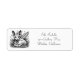 Adicione um toque caprichoso ao seu correio com o nosso doce e fofo gato Sphynx adornado com uma etiqueta de endereço de retorno da coroa de flores. Este design de tinta preta e branca captura a encantadora essência de um felino brincalhão vestindo uma encantadora coroa floral.