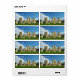 Uma pintura digital de Stonehenge durante o Verão, com céu azul e nuvens brancas.