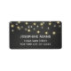 Etiquetas de endereço com design de luz de cadeia de caracteres e fundo de quadro negro.