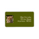Etiqueta de endereço verde de 2" l x 3,75" com uma imagem de um bonito tigre Sumatran. O tigre de Sumatra é uma rara subespécie de tigre, criticamente ameaçada, que habita a ilha indonésia de Sumatra. Ver confete correspondente, bolsa de favor, etiqueta de favor, adesivo redondo e papel de embrulho. Veja toda a coleção de rótulos Safari nos CONVITES | Seção Stickers & Labels