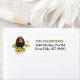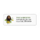 O lado esquerdo dessas etiquetas de endereço de retorno apresenta uma imagem de um belo preto e latão Cocker Spaniel entre girassóis espalhados e folhas de eucalipto. Seu texto personalizado está em verde e preto à direita.