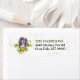 O lado esquerdo dessas etiquetas de endereço de retorno apresenta uma imagem aquática de um adorável cão Cavalier King Charles Spaniel de triz entre girassóis espalhados e folhas de eucalipto. Seu texto personalizado está em cinzas verdes e escuras à direita. Uma mistura de sutil confete de ouro adiciona um pouco mais de interesse ao fundo.