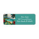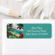 Rótulo de endereço de devolução de temas personalizados da Ilha. Estilo de quadrinhos, pop de arte na Ilha Havaiana. Dossier de endereço para vacinação ou viagem.
