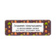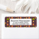 Devolva as etiquetas de endereço com um padrão temático de acampamento divertido. Colocado sobre um fundo castanho avermelhado. Elementos no padrão incluem uma fogueira, uma tenda, uma guitarra, uma pá e mochila. Um retângulo branco colocado sobre cima com seu dentro de informações personalizado.