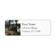 Esta paisagem pacífica apresenta uma tenda azul e cinza lançada na floresta na margem de um lago grande. A água estava legal e o tempo estava quente naquele dia brilhante de verão. Eu tirei esta foto enquanto acampávamos em Mesa Rock State Park em Branson, Missouri. TEXTO: "(Insira seu nome e endereço aqui)". ~ Copyright © Angela Ewing / My YARDVILLE.