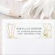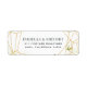 Projetados para combinar com nossa coleção de convites de casamento do Terrarium, esses rótulos elegantes apresentam seu endereço de retorno enquadrados por elementos geométricos de ouro e acentuados com um pequenino pedaço de folhas verdes aquáticas.