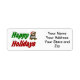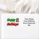 Etiqueta com feriados felizes em texto verde e vermelho 3D e um ursinho de pelúcia com presente. Personalize-o com o seu próprio endereço e use-o para enviar cartões de Natal e presentes. Três tamanhos de rótulo para escolher.