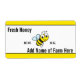 Uma abelha de mel alegre está no centro desta etiqueta de mel. O texto é preto e você pode alterar o texto para criar o rótulo de produto exclusivo.