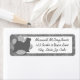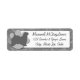 Incrível etiquetas de endereços tibetanos monocromáticos para o moderno amante de cães. Uma silhueta de raça cinza fica empilhada em frente a uma impressão de pata prateada, com um fundo rabugento.