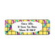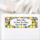 Essas etiquetas de endereço de retorno têm uma design moderna do século médio de luas em crescente dividida horizontalmente em três cores, rosa, azul, lavanda ou marisca, dividida ao meio e espalhada em uma grade com fundo amarelo. Se você gosta do design, mas quer cores diferentes, me mande mensagem.