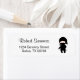 Ninja bonitinha vestida de preto está segurando uma estrela lançadora. A espada tradicional japonesa katana pode ser vista em cima do ombro.
