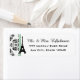 ADICIONE SEU NOME A ESSES RÓTULOS DE ENDEREÇO DE RETORNO CHICANO E BONITO PARISIANO E FRANCÊS COM UMA TORRE EIFFEL EM UM PLANO FLORAL ELEGANTE PRETO E BRANCO E UM FILHO IMPRESSO OLHA DESIGN EM UMA LUZ VERDE MINTE. PROJETADO POR CHRISSY H. STUDIOS, LLC. TODOS OS DIREITOS RESERVADOS.