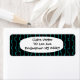 Estas etiquetas de endereço de retorno têm uma design de linhas moderna do século médio com meias retângulos em turquesa num campo de preto.