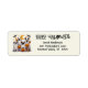 Esta engraçada etiqueta de endereço de retorno de Halloween contém cachorros bonitos em fantasias fantasmas com abóboras de jack-o-lantern. Personalize o texto com sua escolha de mensagem especial de Halloween e nome e endereço de retorno.