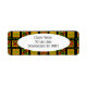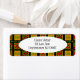 Essas etiquetas de endereço de retorno têm um design de História Negra de círculos, triângulos, diamantes, linhas e zigpes formando um padrão.
