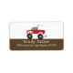 Este rótulo apresenta um caminhão monstro vermelho com chamas amarelas/laranja e sujeira. A área inferior, marrom como terra, pode ser personalizada com um nome e endereço. Outras utilizações possíveis seriam etiquetas de reserva ou qualquer tipo de etiqueta para a escola ou identificação.