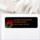 Esta etiqueta de endereço apresenta um buquê de tulipas vermelhas escarlate e folhas verdes sobre um fundo preto puro. Todo o texto pode ser personalizado para suas necessidades pessoais.