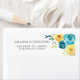 Turquesa e amarelo - lacas e limões, cor d'água, etiquetas de endereços florais de casamentos com acentos de coral com flores aquarelle e folhagem.