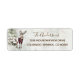 Um design de aquarela rústica perfeito para a época natalícia e durante os meses de inverno, este design tem um veado de madeira vestindo um suéter de lã quente na floresta com uma árvore de abeto coberta por neve. Personalize o modelo de texto com seu nome e endereço de retorno.