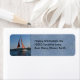 As velas vermelhas num barco evocam uma sensação de romance e aventura e são sempre um adorável contraste da água salgada azul profunda, o céu de verão sem nuvens de um dia perfeito na água perto de Anacortes, Washington.