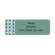 Estas etiquetas de endereço de retorno têm um design de arte de diamantes lacrimogêneos com linhas diagonais e diamantes verdes de mar em um campo de branco.