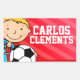 Assegure-se de que sua criança não perca suas possessões embellishing livros, bolsas, garrafas e brinquedos com esta etiqueta personalizada simples. Brilhante e colorido faz o jogo de criança de identificar os pertences de todas suas crianças. Personalize com seu nome completo. Este exemplo lê Carlos Clements. Aperfeiçoe para o filho quem é uma estrela de brotamento do jogador de futebol ou de futebol. Gráfico projetado por Sarah Trett.